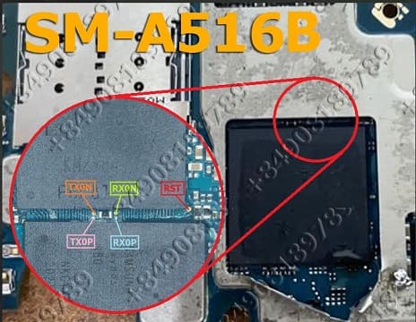 ISP Pinout refers to a set of contact points on the mainboard of the Samsung SM-A516B, used for low-level firmware flashing or recovery operations. These pins allow direct communication with the internal memory using specialized hardware tools such as UFI Box, JTAG, or other supported programming devices. By accessing these pins, technicians can perform tasks like unbricking, bypassing FRP, or flashing stock ROMs — all without removing the memory chip from the motherboard.